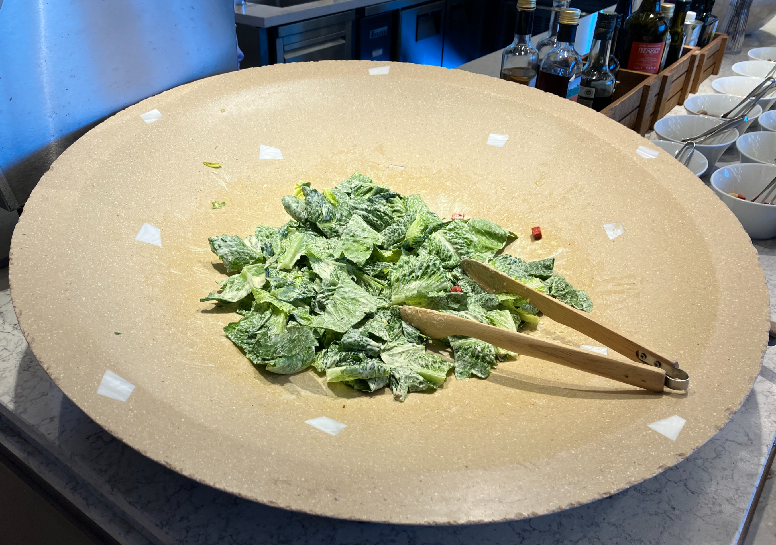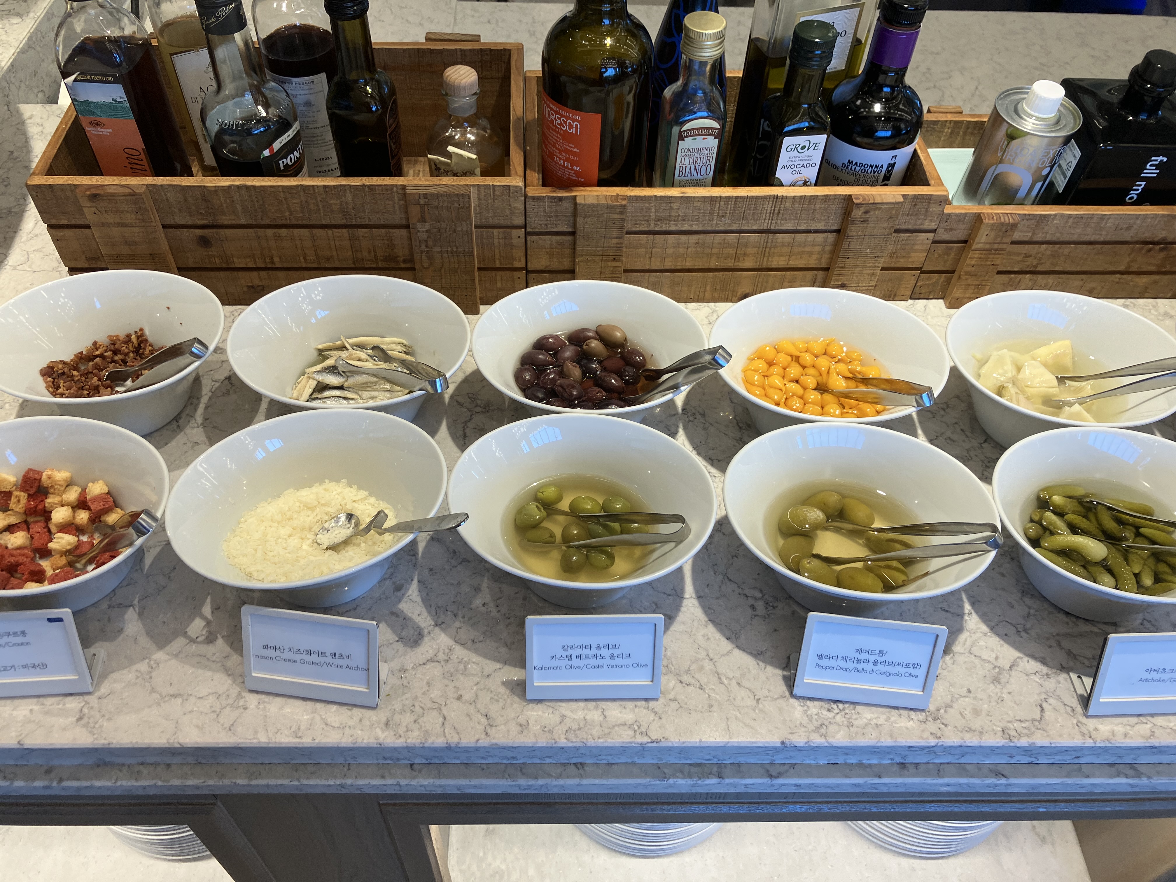 엄청 큰 접시에 있던 시저샐러드, 피클들. 비릿한 생선인 앤초비, 아티초크도 있었다