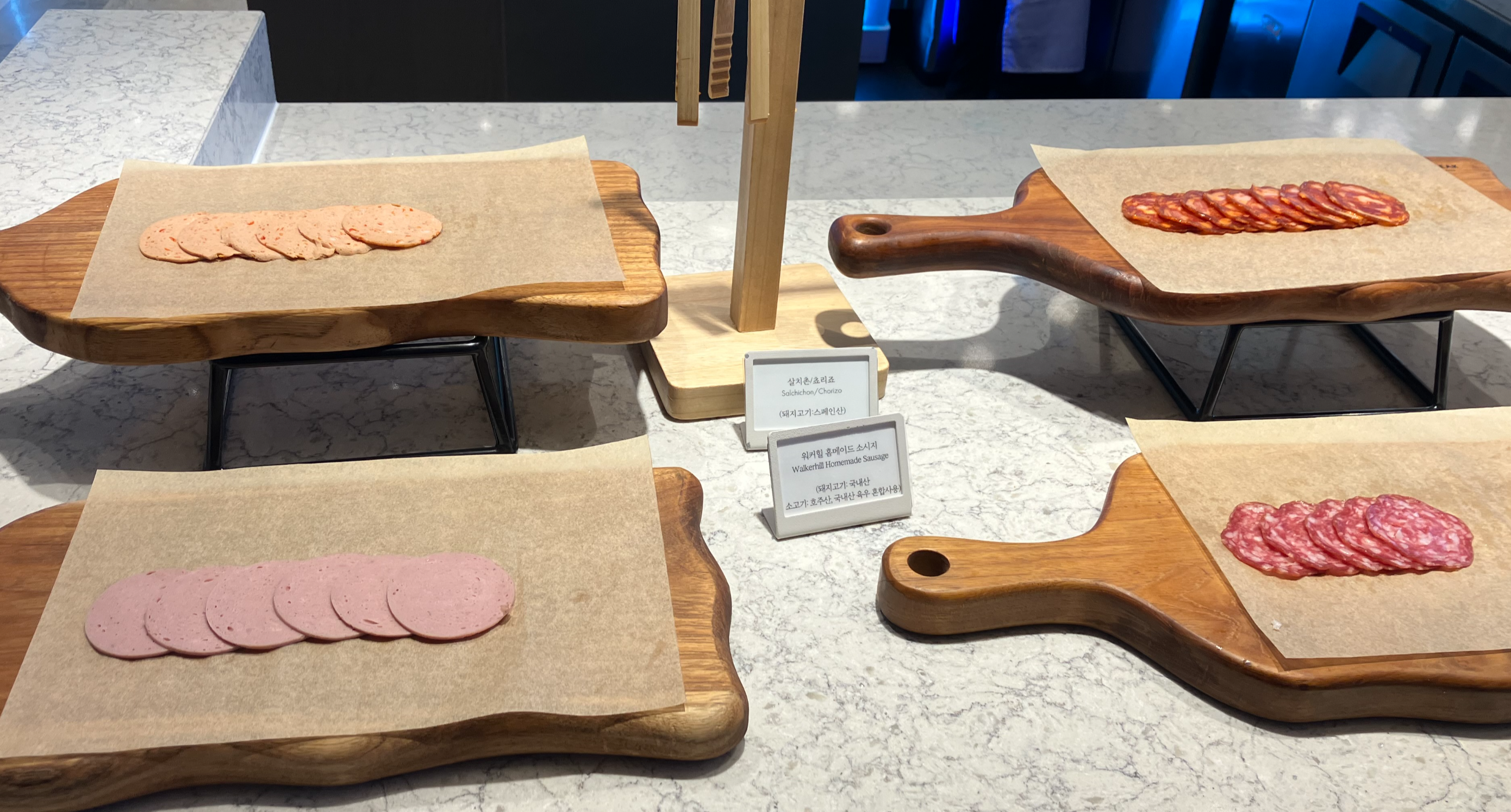 워커힐은 다른 호텔과 달리 직접 만드는 식재료들이 꽤 있다. 연어를 직접 훈제하고, 버터를 만들고, 소세지, 김치.. 지속적으로 연구하고 개발하는 모습이 퍽 인상적이다.